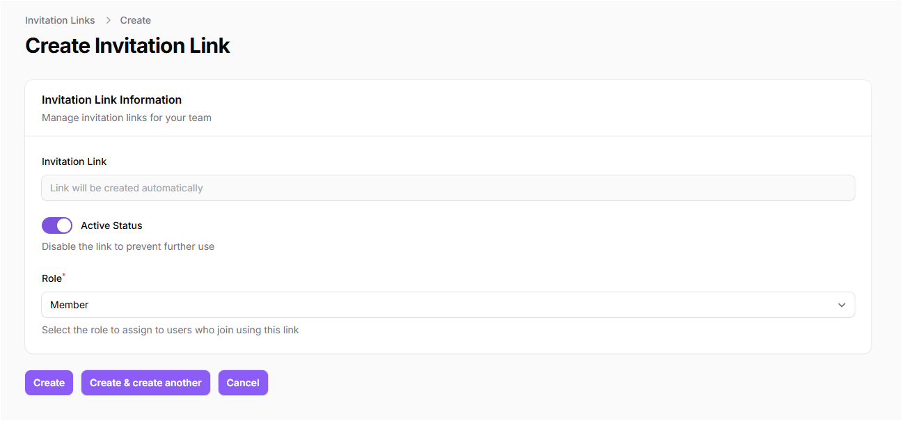 : Membatalkan proses pembuatan undangan. Tidak ada undangan yang akan dikirim dan Anda akan kembali ke halaman sebelumnya.Selain menggunakan invitation, Anda dapat melakukan invitation melalui invitation links, sehingga Anda cukup membuat invitation links dan copy link tersebut ke tim yang akan diinvite